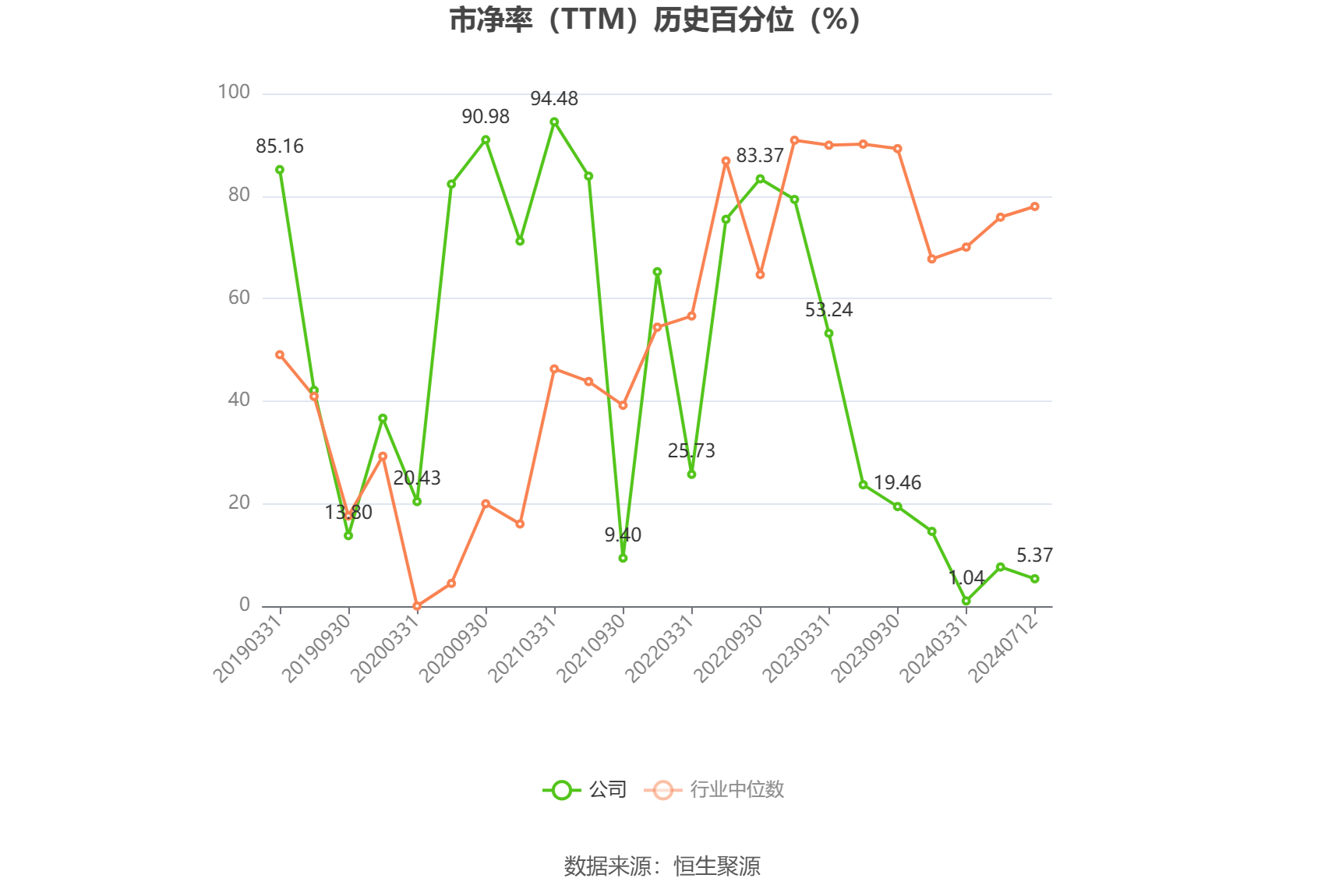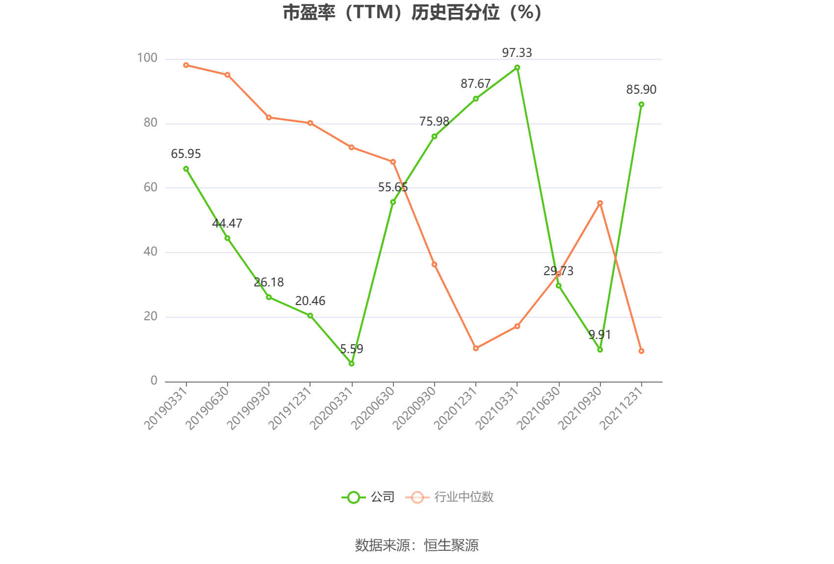市盈率为负时,不显示当期分位数,会导致折线图中断。